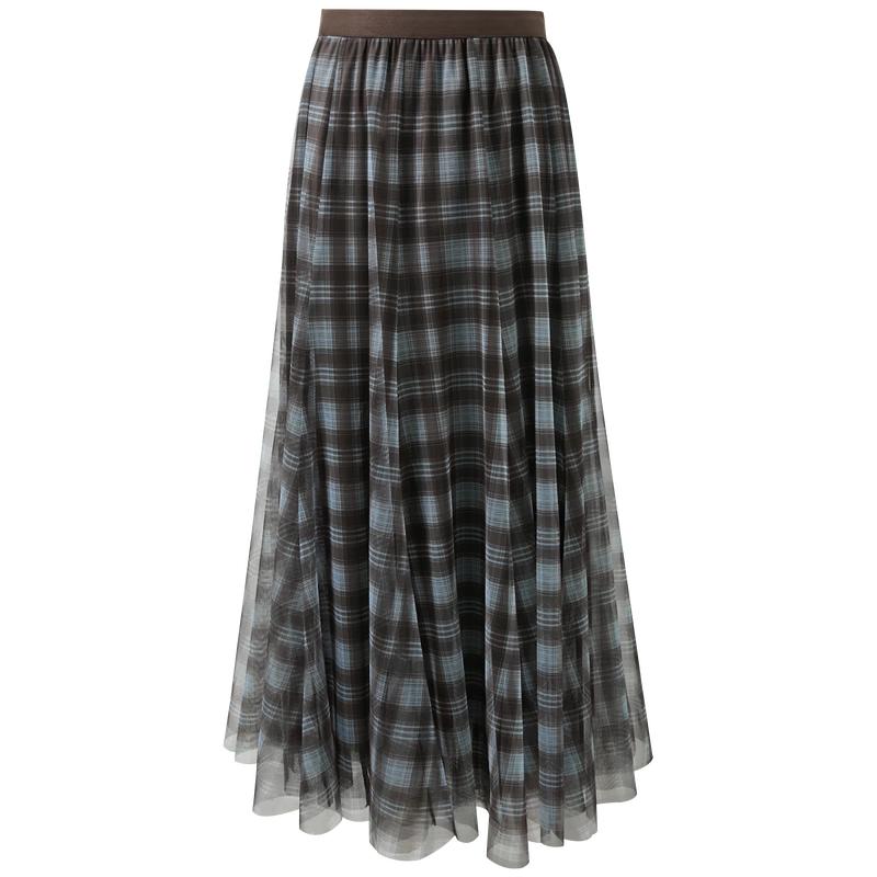 Women's Plaid Mesh A-line Long Skirt