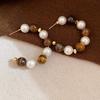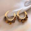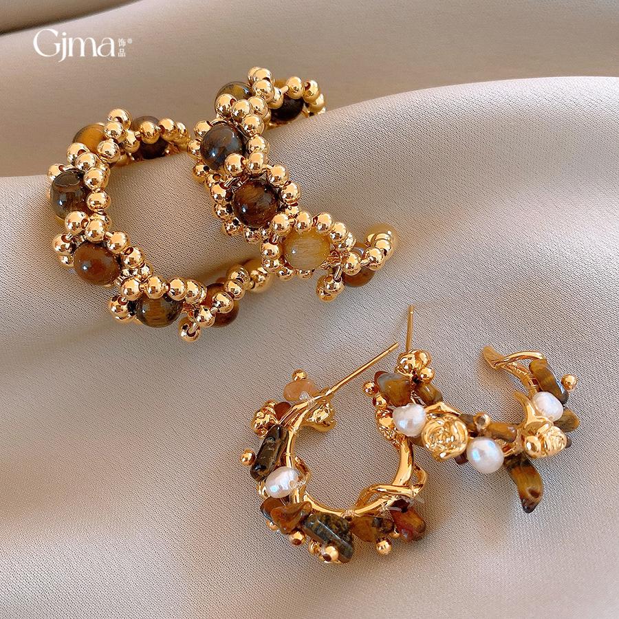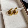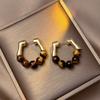Silver Needle Geometric Tiger Eye Flower Earrings - Retro Style, Light Luxury, High-End Fashion Ear Studs