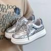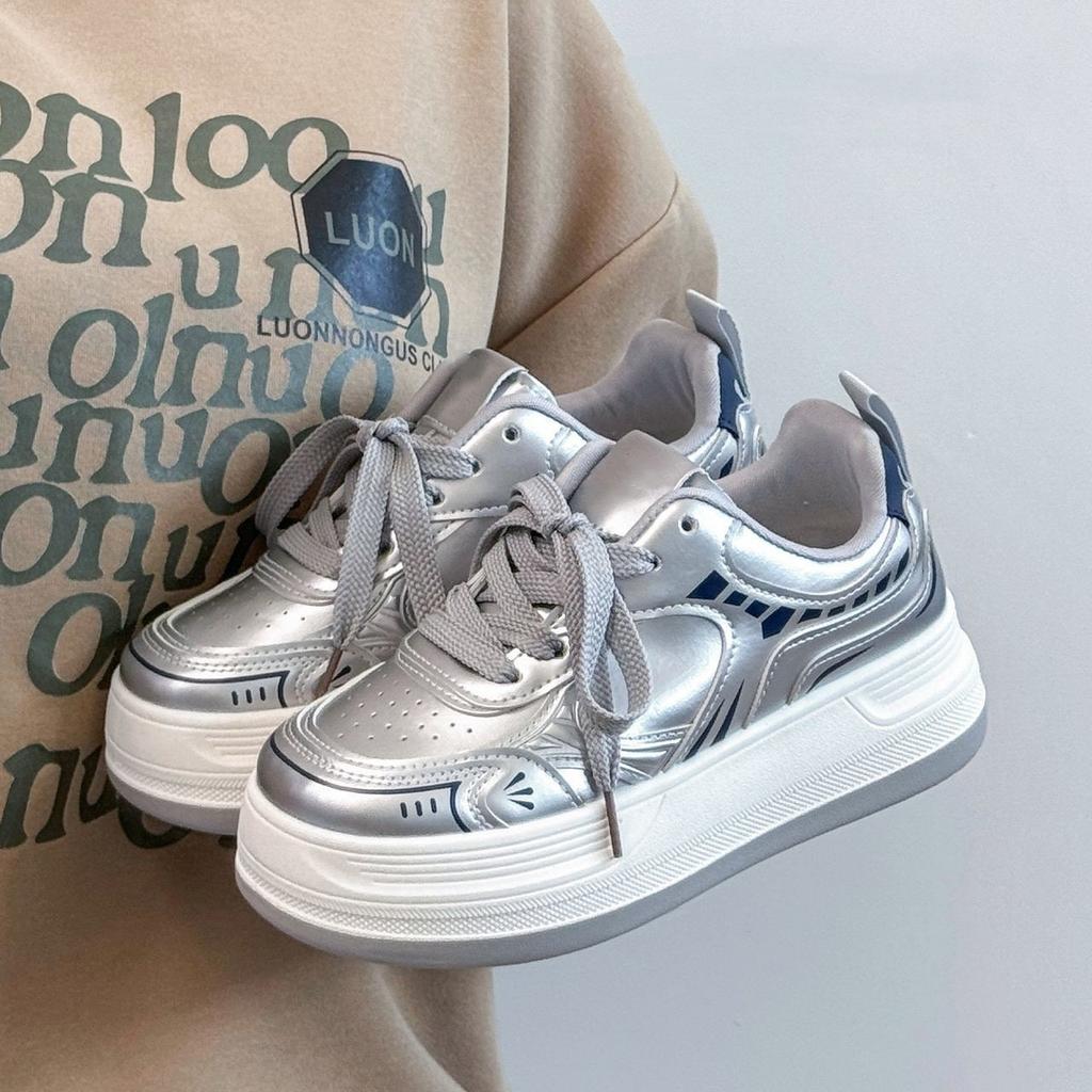 Campus Style 22 Autumn Leather Thick-soled Silver Sweet Muffin Bottom Lightweight Wear-resistant Board Shoes