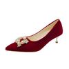 Red Bridal Shoes Wedding Dowry Light Luxury High-end Pearl High Heels Medium Heel Large Size Single Shoes