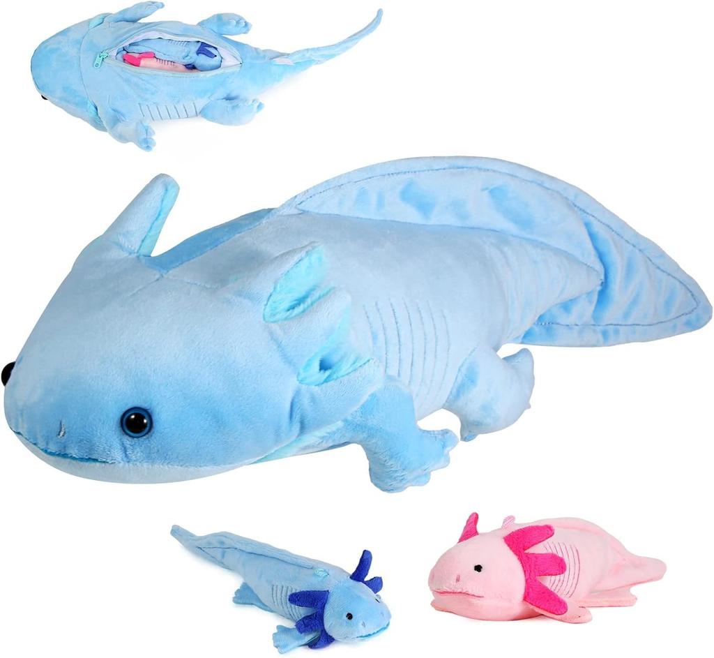 ZHONGXIN MADE Soft Axolotl Plush Toy Set with Cute Axolotl Stuffed Gift for Friends and Blue 3-Piece Zipper, Animals, Kids,