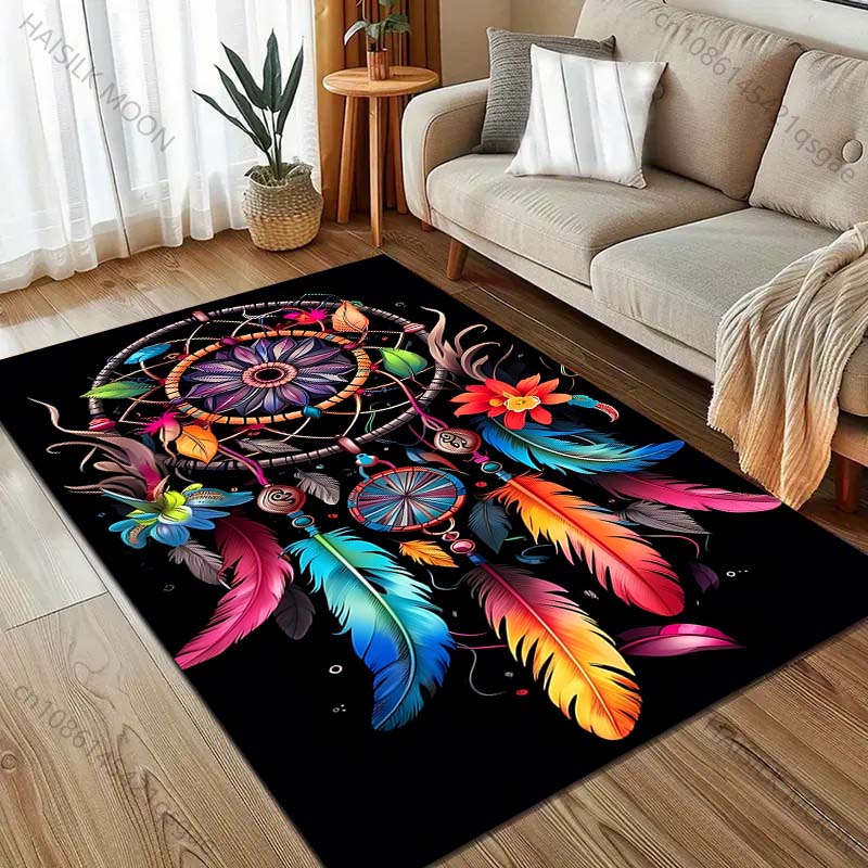 Dream Catcher and Feathers Print Carpet for Living Room Bedroom Sofa Doormat Home Decor Non-slip Floor Mat Room Area Rug