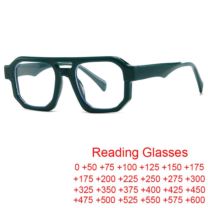 Dark Green Oversized Square Reading Glasses for Men Women Retro Double Bridges Fashionable Presbyopia Eyewear Blue Light Filter
