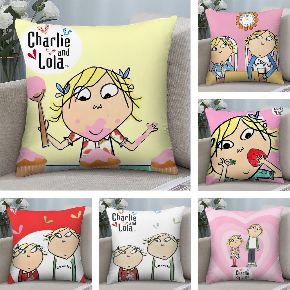 Charlie and Lola Anime Cushion Cover Soft Plush Fabric Double-Sided Printed Sofa Cushion Cover for All Seasons Home Decor Gift