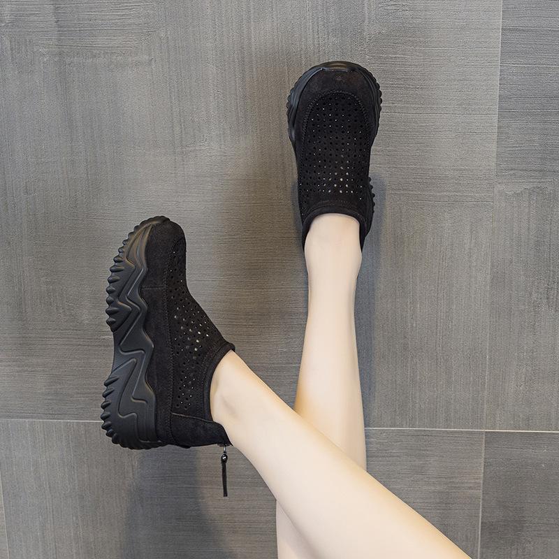 Muffin Shoes Summer New Thick-soled Heightening Lazy Shoes Hollow Casual Breathable Comfortable Lightweight Dad Shoes