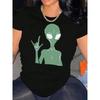 European Sizes Creative Cartoon Alien Pattern Printed Women'S Trendy Short-Sleeve T-Shirt, Simple Casual Sports Tee, Comfortable Summer Top