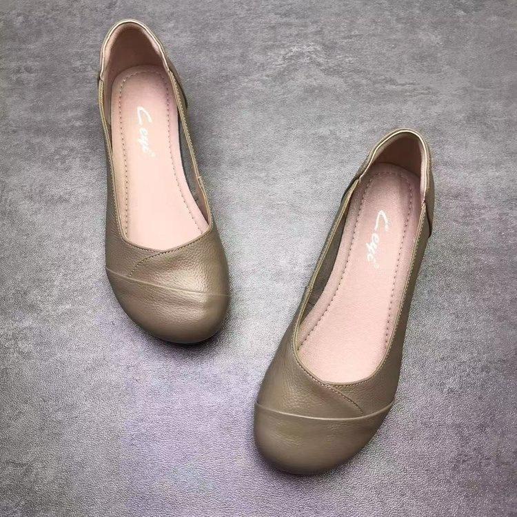 Wasteland Wind Soft Leather Beef Tendon Soft Sole Single Shoes Autumn Flat Sole Comfortable Shallow Mouth Leather Shoes Flat Heel