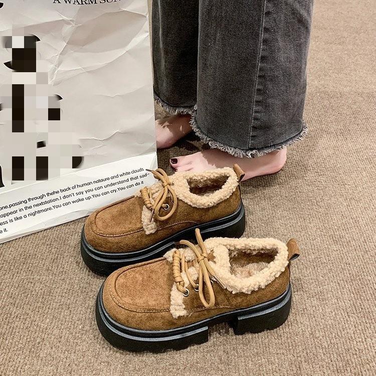 Retro Velvet Birkenstocks Winter New Small Thick-soled Heightening Cotton Shoes Lace-up Snow Boots