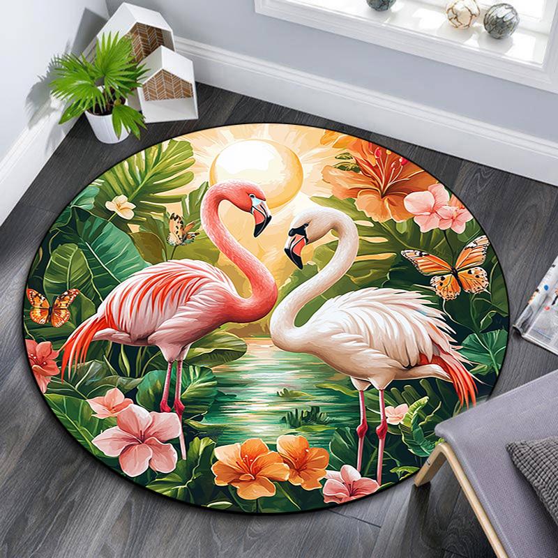 Flamingos Sunset Beach Round Area Rug,Carpet Rug for Living Room Bedroom Sofa Playroom Decor,Non-slip Floor Mat