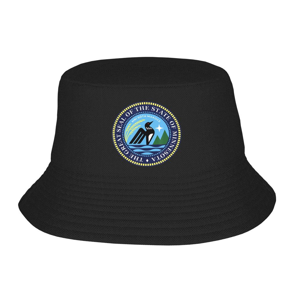 Minnesota Seal with Loon Bucket Hat Street Style Fisherman Caps For Unisex Trendy Beach Travel Sun Hats Personality Printed Cap