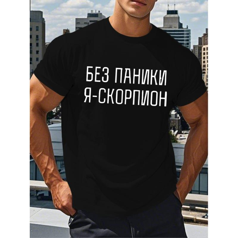 European Sizes Men T Shirt Black Breathable Russian Letter Print Casual Short Sleeve Top For Daily Street Wear