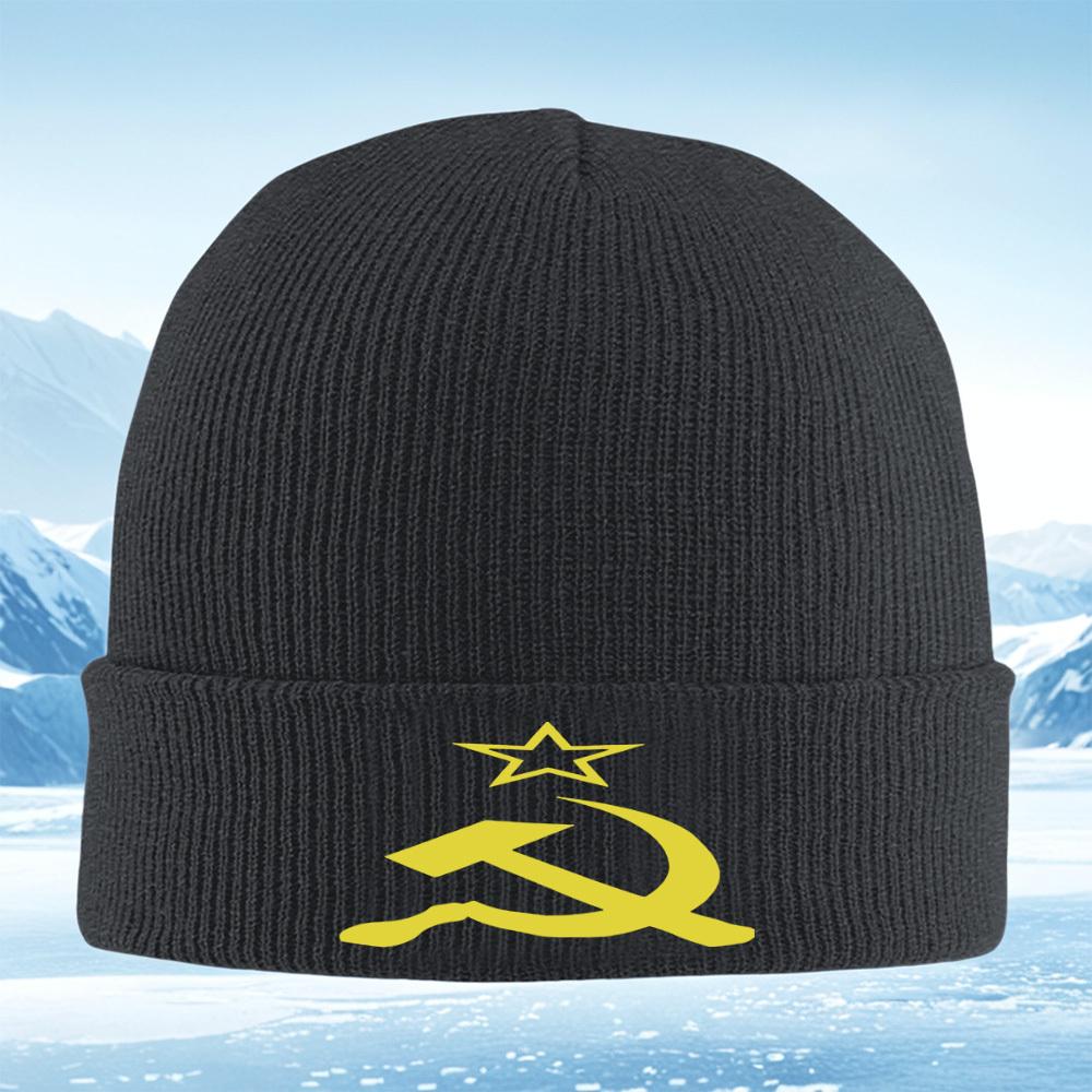 Star Hammer Sickle Symbol Emblem Men Women Unisex Knitted Hat Beanie Pullover Cap Winter Thermal Warm Christmas Outdoor Cycling