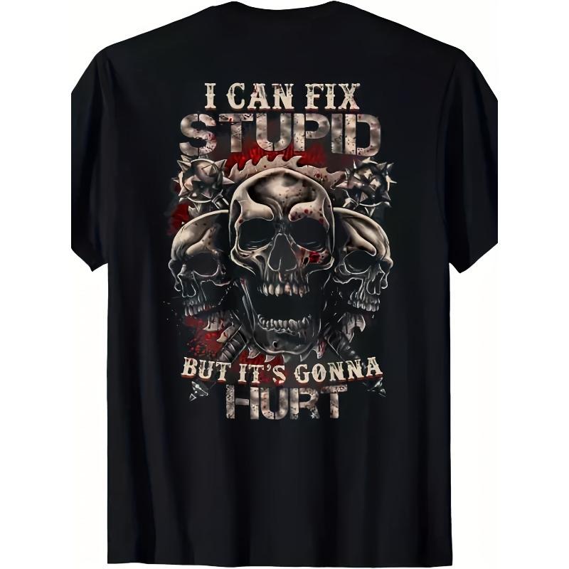 European Sizes Men'S Casual Short-Sleeve T-Shirt | Fashionable Skull Design, Humorous Graphic, Perfect for Everyday Wear and Sports Activities,