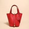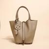 Vegetable Basket Bag, First Layer Cowhide Tote Bag, Commuter Bucket Bag, Women's Genuine Leather Bag, European and American Retro.
