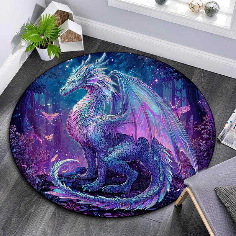 Purple Dragon Round Area Rug,Carpet Rug for Living Room Bedroom Sofa Playroom Decor,Non-slip Floor Mat