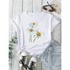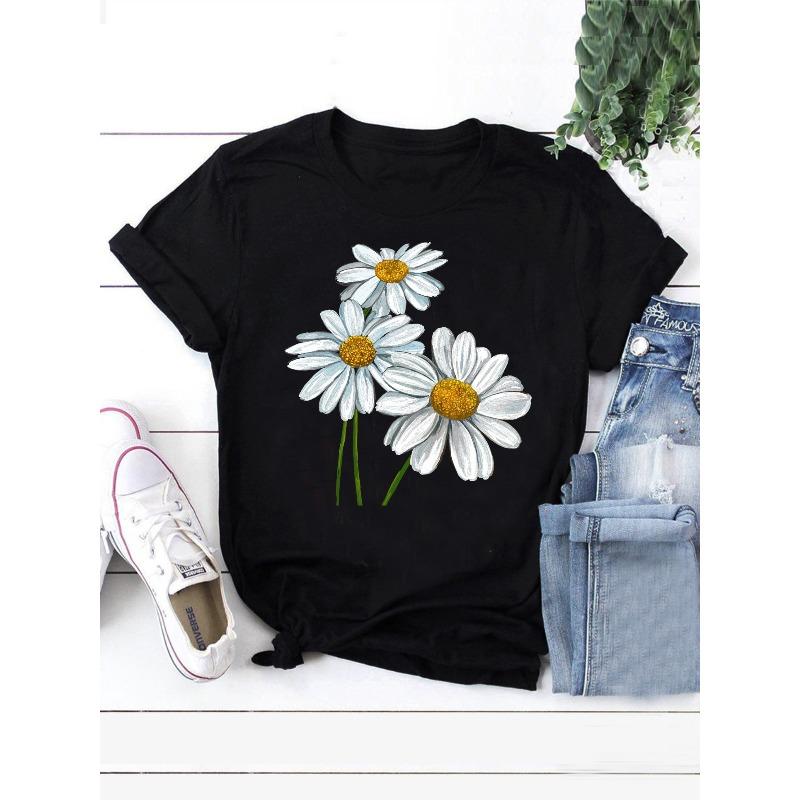 Womens Plus Size Casual T Shirt Daisy Print Short Sleeve Round Neck Slight Stretch Top