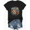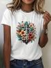 European Sizes Women's Chic Letter Cross Floral Print T-Shirt Comfortable Fashion Casual Short Sleeve Round Neck Daily Wear Top