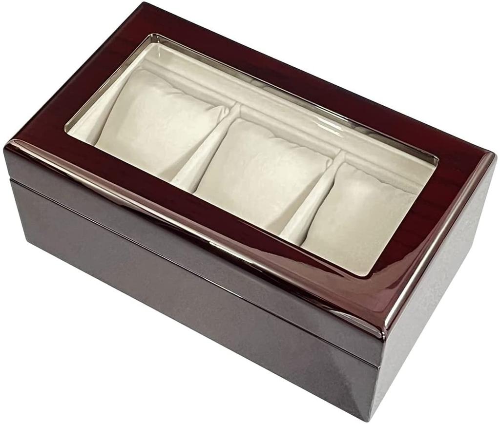 IGIMI Watch Luxury Wooden Watch Box with Brown Wood Grain Gift Wrapping Labor Appreciation IG-ZERO 40A-5W Box, 3-Watch Capacity, Window, Pattern,
