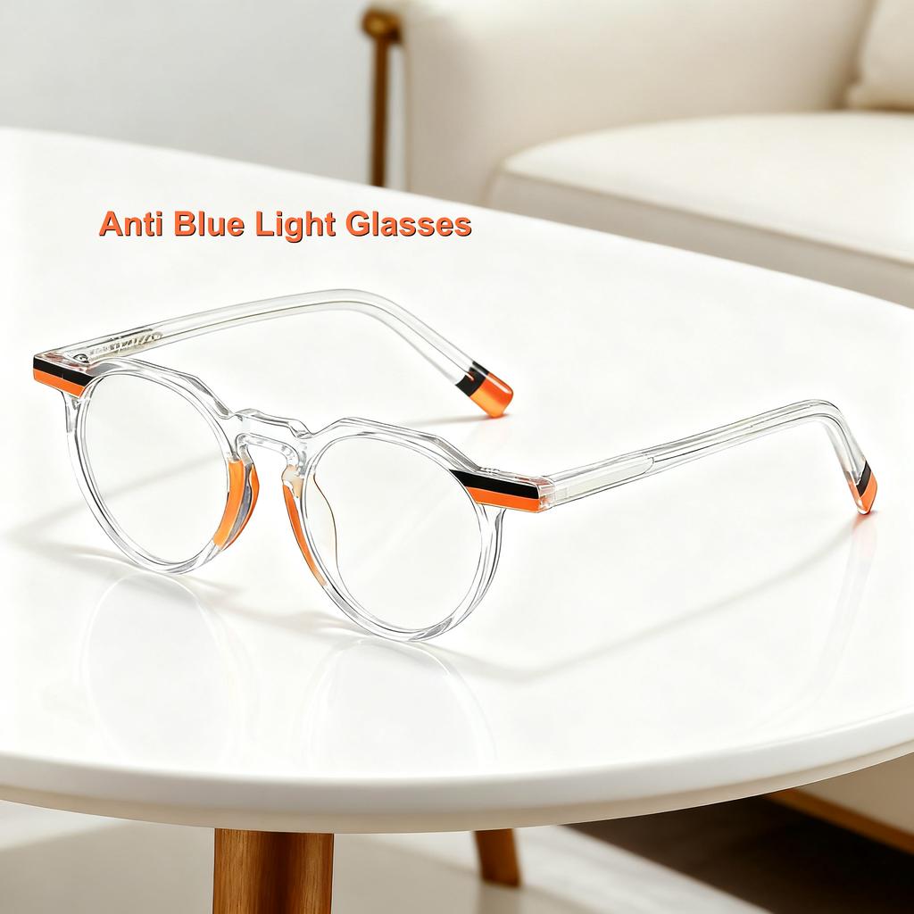 New Fashionable Round Frame Womens Anti Blue Light Glasses Neutral HD Color Blocked Design for Outdoor