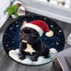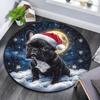 Christmas French Bulldog Round Area Rug,Carpet Rug for Living Room Bedroom Sofa Playroom Decor,Non-slip Floor Mat