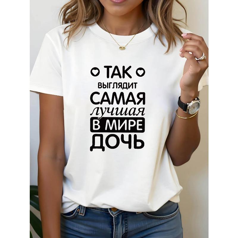 Women's Russian Letter Print T-Shirt Casual Crew Neck Short Sleeve Summer Top