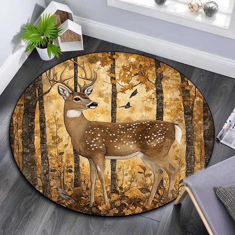 Forest Deer Round Area Rug,Carpet Rug for Living Room Bedroom Sofa Playroom Decor,Non-slip Floor Mat
