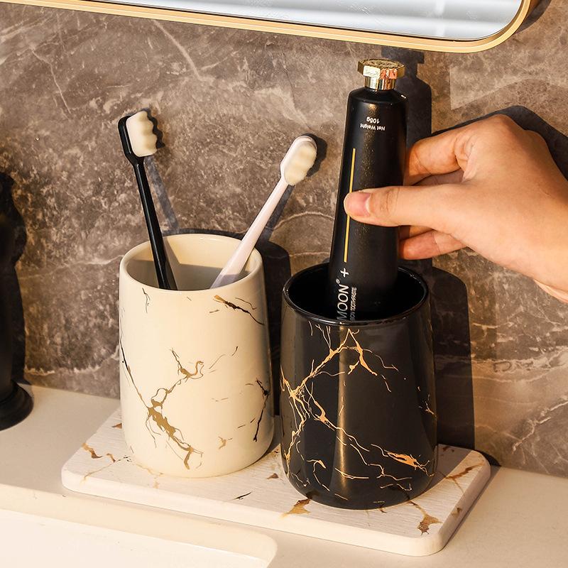 Creative Gold Plated Marble Ceramic Mouthwash Cup Home Couple Toothbrush Holder Ceramic Mouthwash Cup Bathroom Accessories