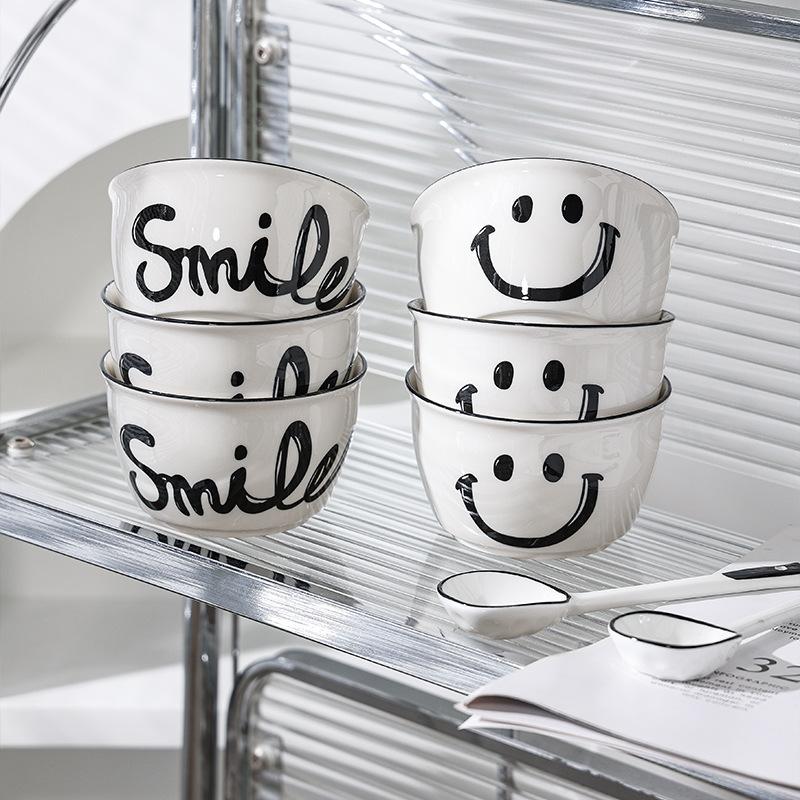 Smile Ceramic Bowl Rice Soup Salad Bowls White Plate Bowl Set Fruit Bowls Kitchen Household Supplies Nordic Korean Tableware