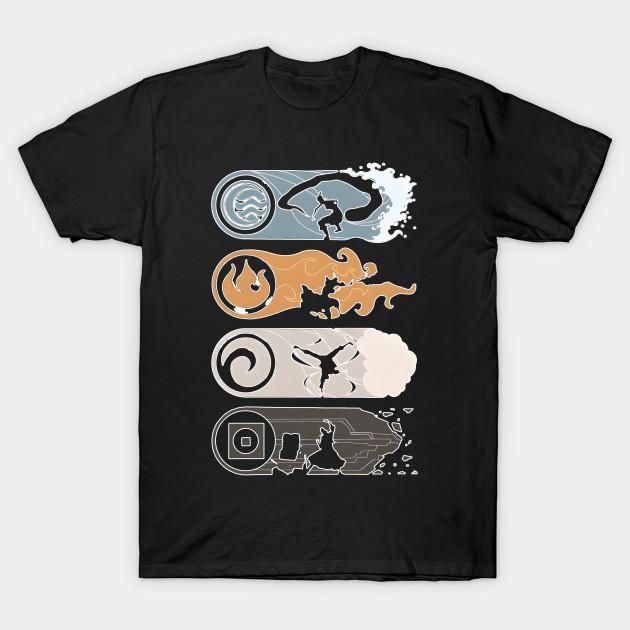Men Black Print T-shirt The Four Elements Avatar No-Cut Transfer Paper Print Cotton Tshirt