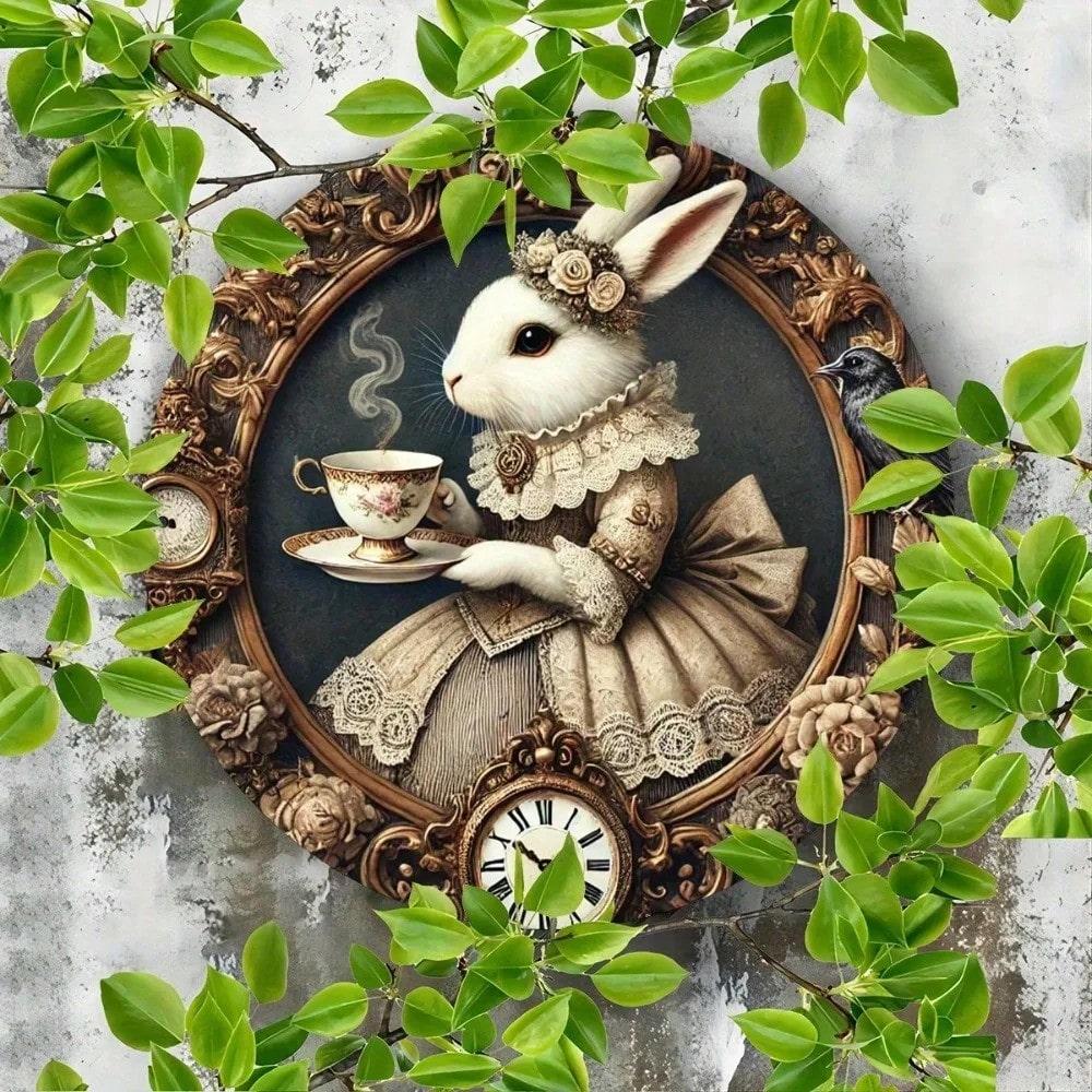 Vintage Round Metal Sign Rabbit Clock 20x20cm Home Wall Art Decor