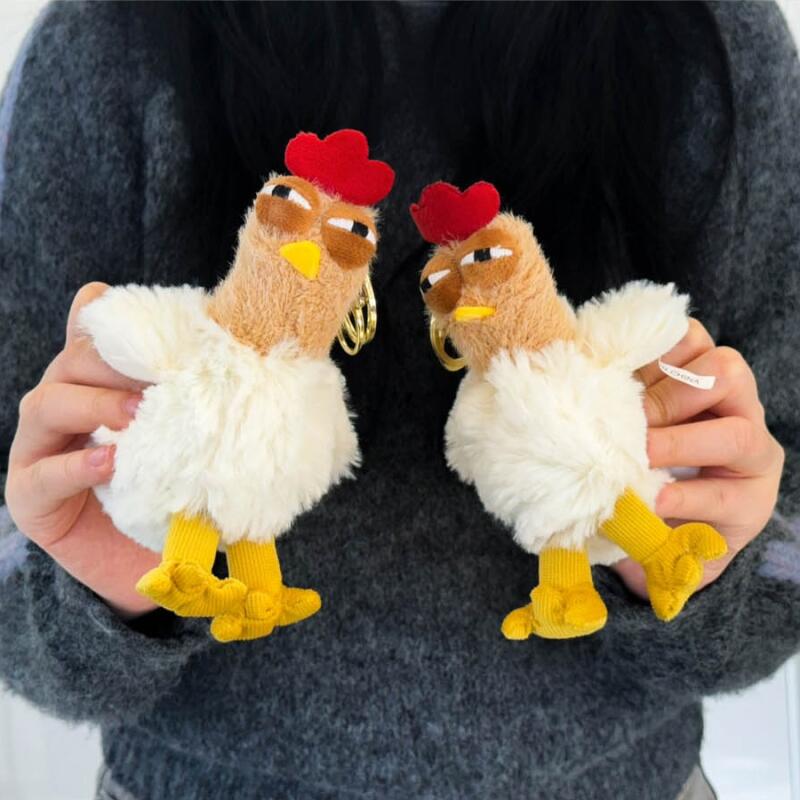 Press To Lay Eggs, Office Worker Chicken Doll Bag Keychain 17cm