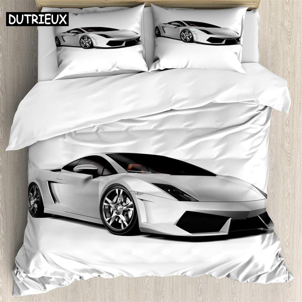 White Sports Car 3Pcs Bedding Sets 3D Digital Printing Custom Quilt Duvet Cover Set Home Queen King Quilt Pillowcase