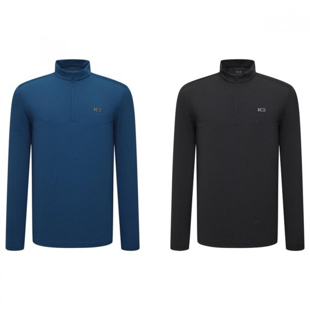 The KMP25209 Men's Spring Functional Hiking T-Shirt Surround (SURROUND) Long Sleeve Zip-Up features unique waffle texture and excellent elasticity with Italian jersey romelina fabric. Designed for both daily and hiking use, it offers versatile styling options. Available colors are Blue (TB) and Black (Z1).