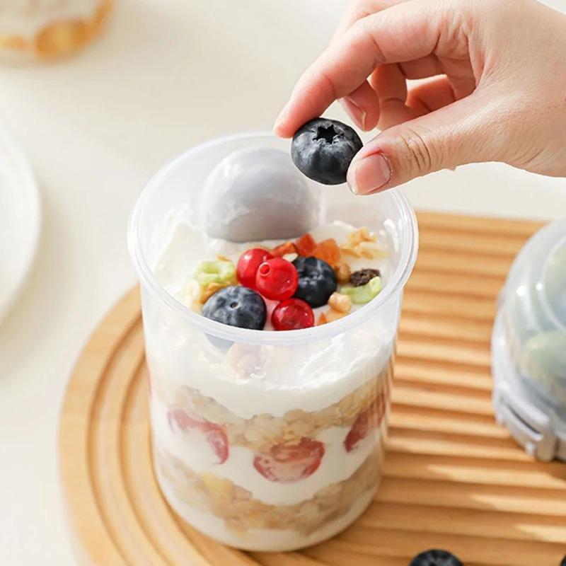 Portable Breakfast Cup with Double-Layer Lid - Includes Spoon & Fork, Food Storage Box for Oatmeal/Cereal/Salad/Fruits
