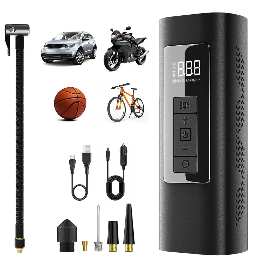 Easy to carry: Compact and lightweight, weighing just 607g, it can be easily handled with one hand. It's versatile and can be used with a wide range of devices, from children's balls and bicycles to motorcycles and cars. Having one at home is a great addition. It can be charged and powered via the included USB cable or 12V DC car power cord, making it ideal for travel, outdoor activities, camping, and other outings.