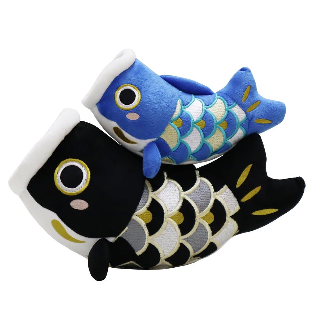 Auspicious May Dolls, Set of 2 Carp, Black and Blue Carp, Parent and Child, Plush Toy, for First Festival, Indoor Use, Side Display