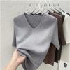 Summer New V-neck Slim-fit Knitted Bottoming Shirt Women's Front Shoulder Gray Five-quarter Sleeve Top Thin