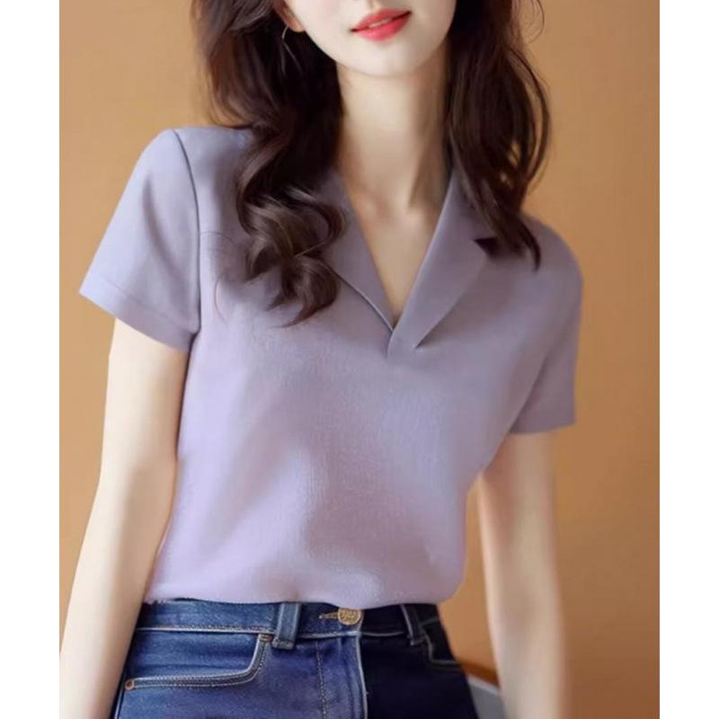 New Design Summer Temperament Top Purple Slim-fit Front Shoulder Short-sleeved T-shirt Women's Summer