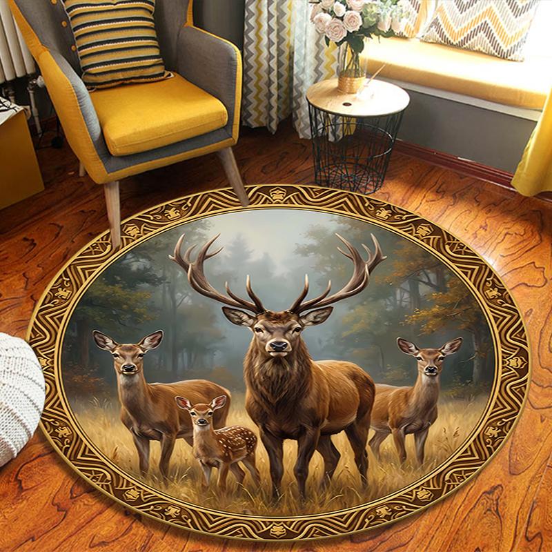 Deers Round Area Rug,Carpet Rug for Living Room Bedroom Sofa Playroom Decor,Non-slip Floor Mat