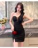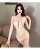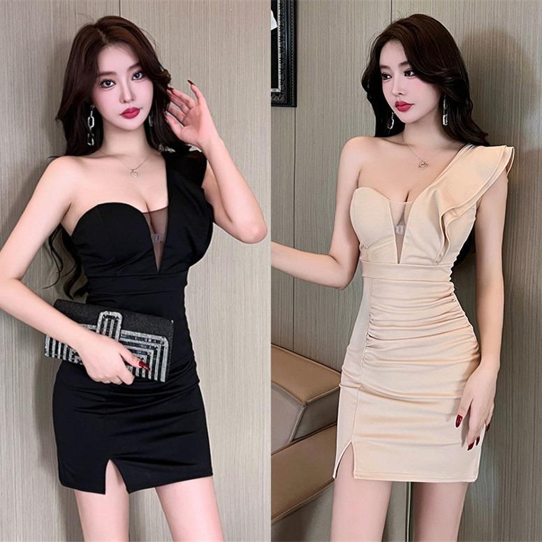 Deep V Slanted Shoulder Low-cut Tube Top Dress Covers the Stomach and Looks Thin S-shaped Sexy Beauty Technician Work Clothes Women