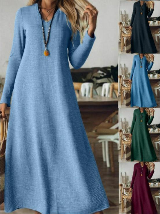 2025 Autumn/Winter Elegant European & American Solid Color Long Sleeve Slimming Maxi Dress