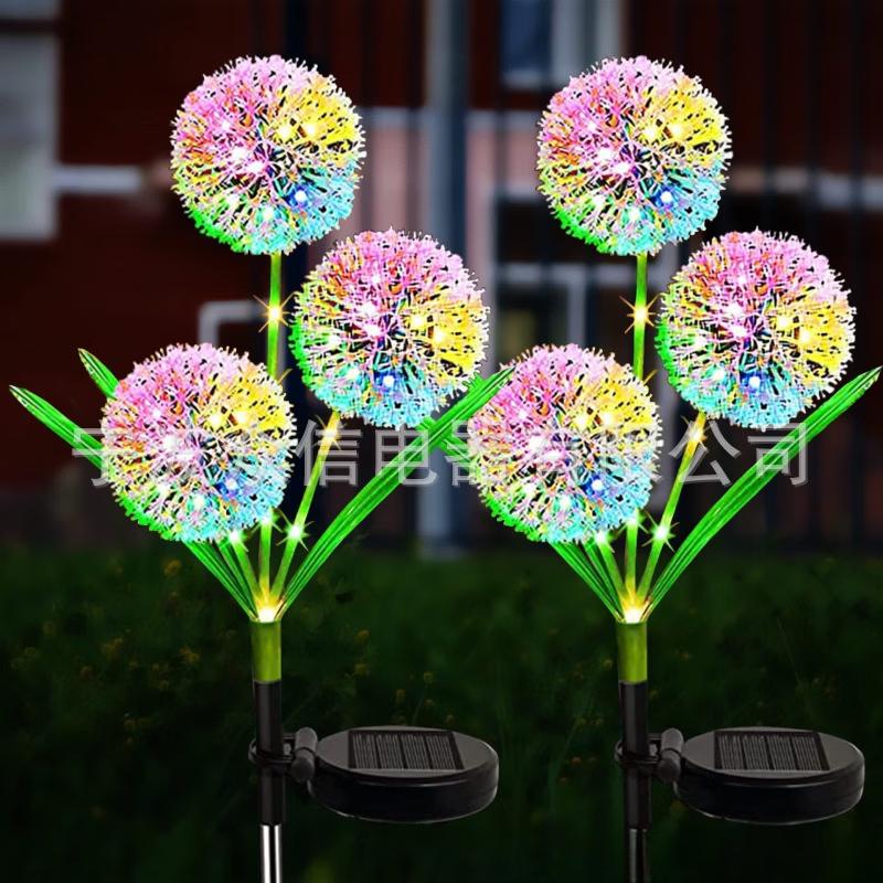 Nufeng 3-Head Dandelion Solar Garden Lights, Color-Changing, 2-Pack