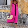 2026 Women's Vacation A-Line Dress with Adjustable Straps and Color Block Design