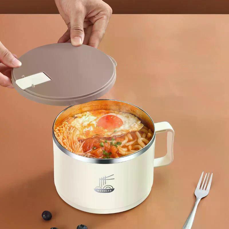 304 Stainless Steel Foam Bowl Large Capacity Double-Layer Anti-Scald Lunch Box With Tableware/Lid Can Drain Ramen Bowl