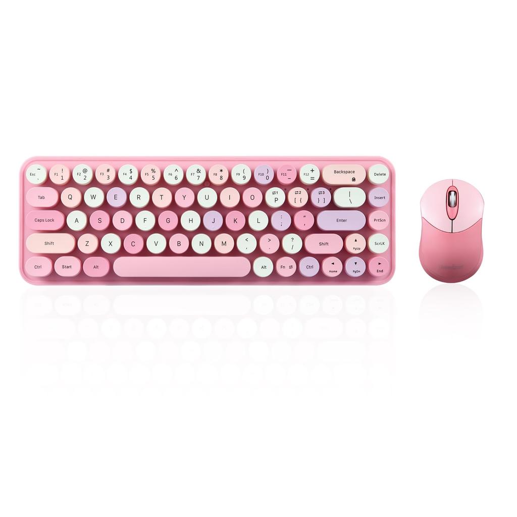 Stylish desktop set - compact keyboard and mouse in pink, purple, and white