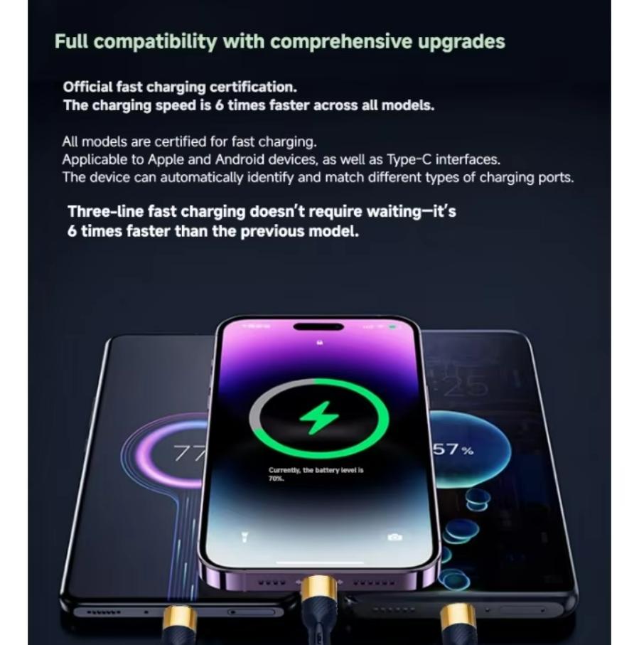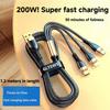 200W Super Fast Charging Data Cable, 3-in-1 Charging Cable, One-to-Three, Compatible with Apple/Android/TYPE-C