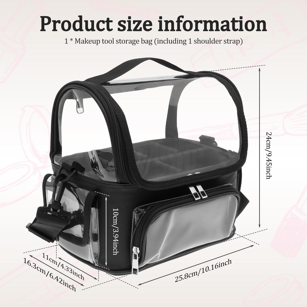 Makeup Bag PVC Transparent Makeup Brush Travel Case with Adjustable Strap & Dividers Large Capacity Portable Travel Cosmetic Bag