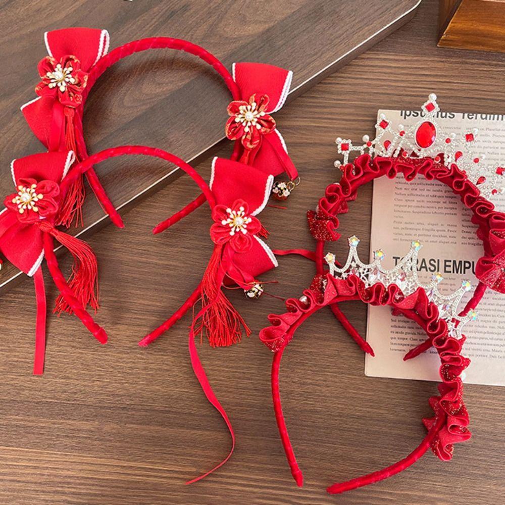 Tassel Chinese New Year Headband Red Hanfu Hairband All-match Crown Headwear Children