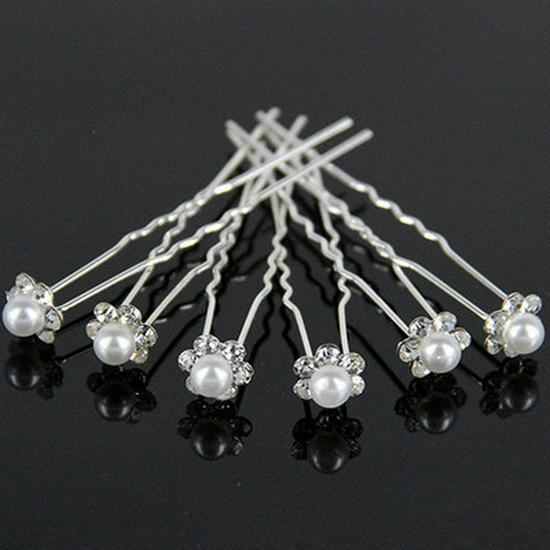 Rhinestone Pearl Flower U-shaped Bride Hairpin Clip