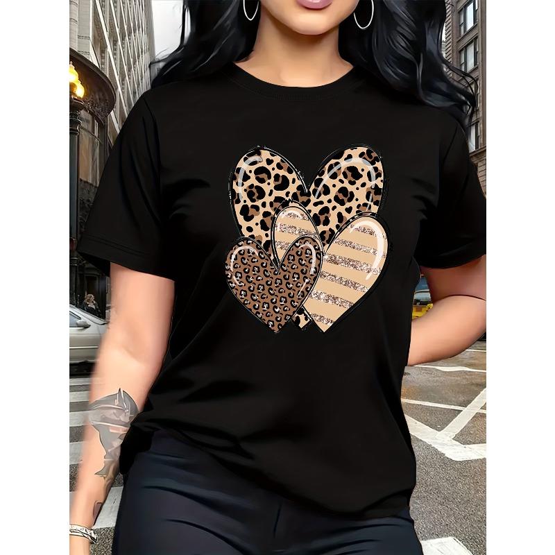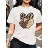Womens Leopard Print Heart Design T Shirt Appliqué Graphic Round Neck Short Sleeve Breathable Medium Stretch All Season Matching